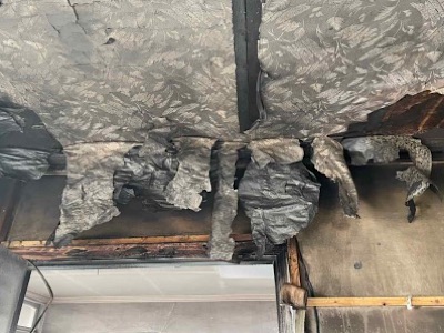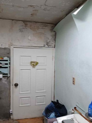 [화재 당시 천장] 화재 이후 구조적 손상으로 인해 지속적인 누수가 발생하고 있었고, 집안 곳곳에 곰팡이가 번졌으며 벽과 바닥은 장기간 습기에 노출된 채 방치되고 있었습니다. 2년이란 시간이 흐르고 곧이어 입원 중이던 첫째 자녀의 퇴원이 예정되었기에 급하게 자녀가 머물 공간이 필요했지만, 집은 생활하기에 전혀 적합하지 않은 상태였습니다.