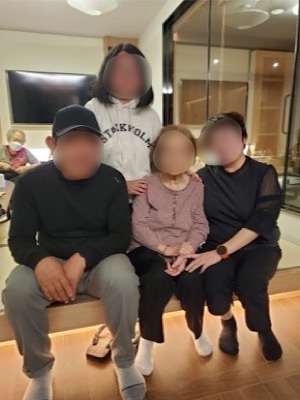 [김미선(가명)씨 가족 사진] 배우자는 15년간 조선소에서 일하며 가족을 위해 빚을 갚아 나갔지만 지난해 4월 실직을 했습니다. 지금은 김 씨가 생계를 위해 낮에는 교회 사무직으로, 저녁에는 편의점에서 근무하고있습니다. 하루 두 가지 일을 쉬지않고 병행하며 무너진 가정형편 회복을 위해 노력하고 있지만 오랜 돌봄의 책임까지 짊어지고 있기에 김 씨의 어깨는 무겁기만 합니다. 시모는 와상 상태의 치매로 요양병원에 입원 중이며 매월 약 80만 원의 병원비가 발생하고 있습니다. 첫째 자녀 역시 학창 시절 따돌림의 아픔으로 조현병 진단을 받아 현재 병원에 입원 중이며 매월 약 120만 원의 치료비가 지속적으로 이어지고 있습니다 김 씨 부부는 어려운 상황에도 성실히 가정을 유지해오고 있었습니다.